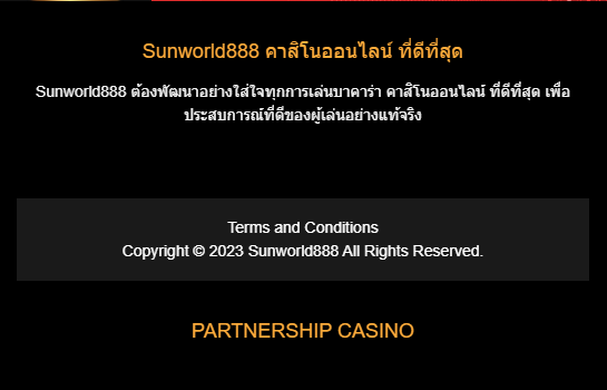 sunworld888 คือเว็บคาสิโนออนไลน์อันดับต้น ๆ ของไทย ที่เปิดให้บริการแบบเว็บตรงไม่ผ่านเอเย่นต์ ได้ใบเซอร์รับรองจากอังกฤษมากถึง 10 ใบ! มีครบทุกเกม ทั้งบาคาร่า สล็อต กีฬาสด ระบบฝาก-ถอนออโต้ภายใน 30 วินาที ไม่ต้องแจ้งสลิป ไม่ต้องรอนาน เล่นได้ทุกอุปกรณ์ พร้อมทีมงานบริการตลอด 24 ชั่วโมง sunworld888 ทางเข้า ปลอดภัย มั่นคง เล่นจริง จ่ายจริง